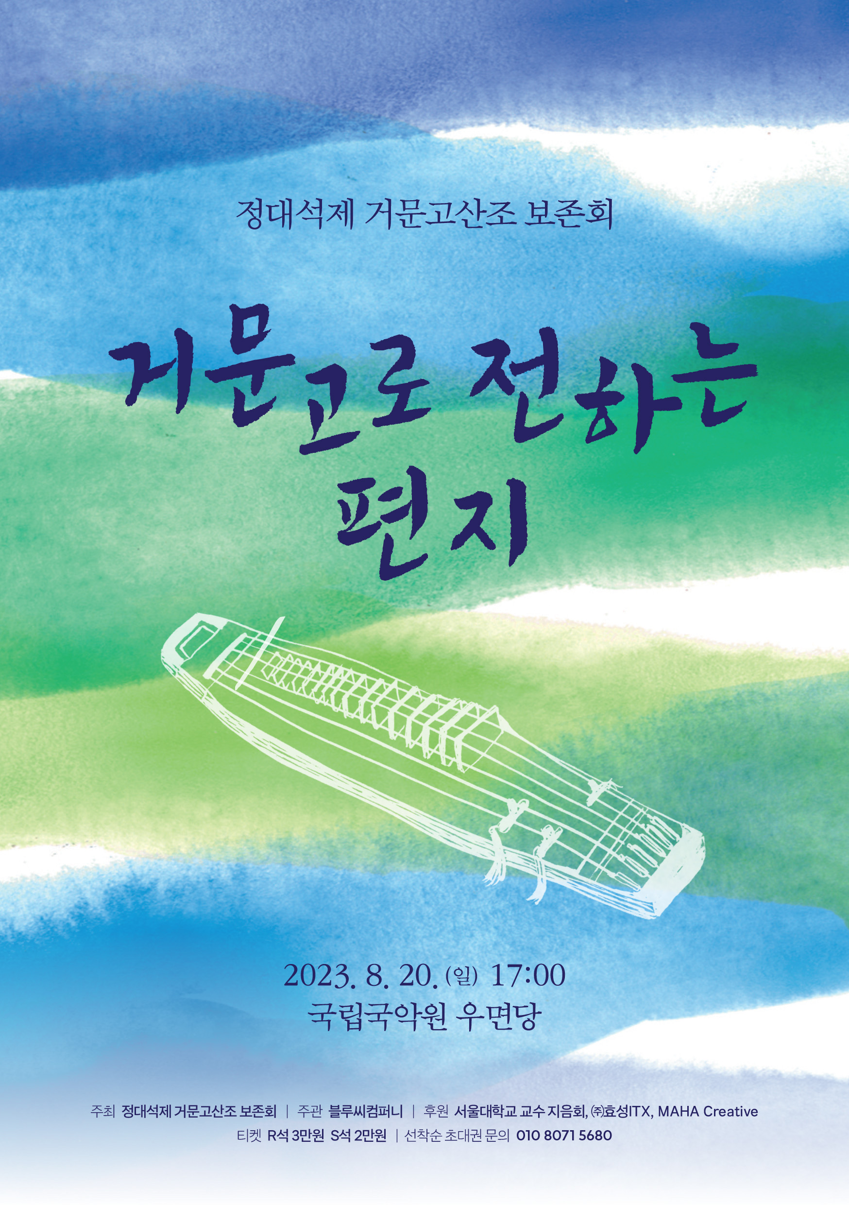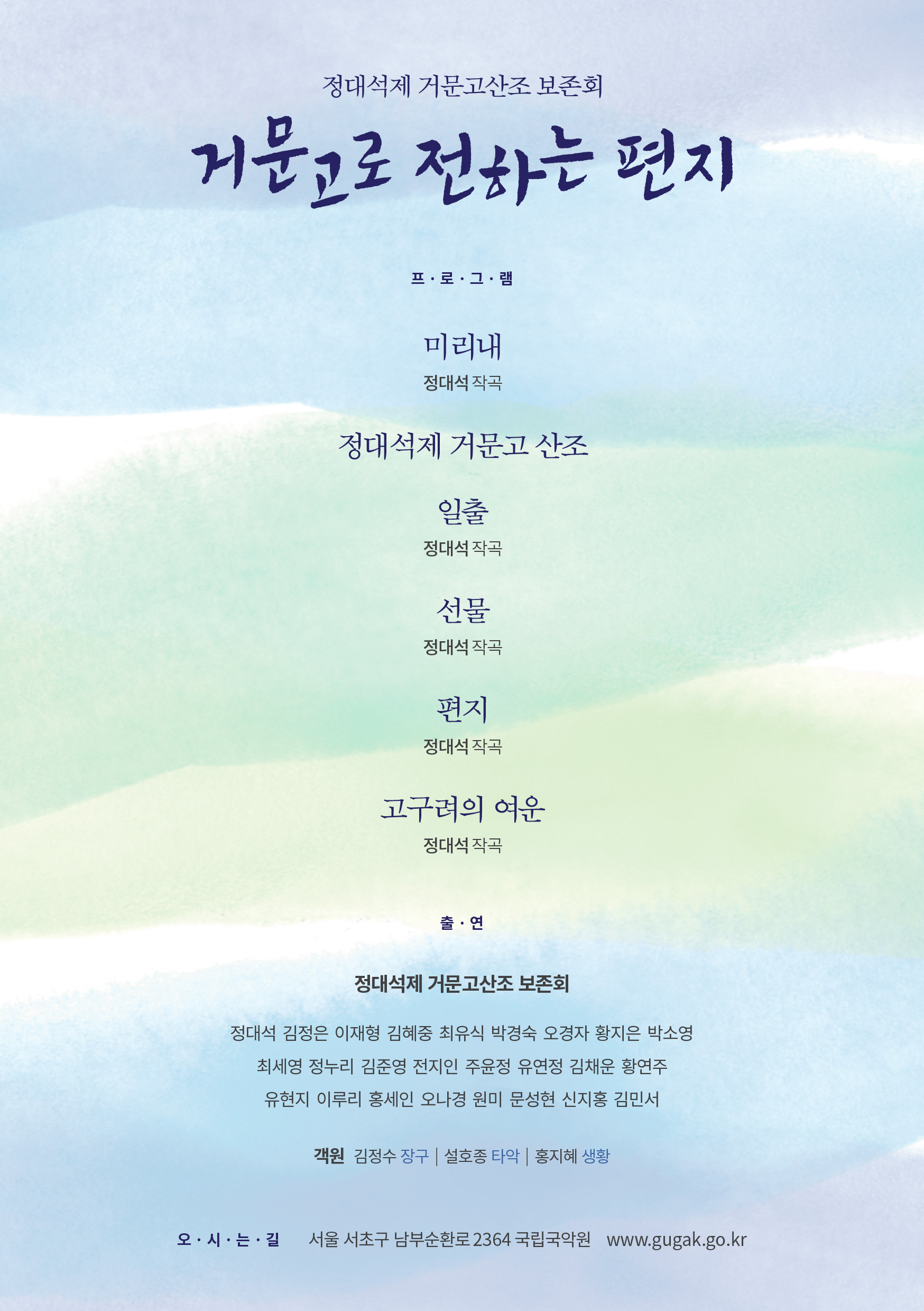 공연홍보 8.20. '거문고로 전하는 편지' 국립국악원 우면당 오후5시 본문