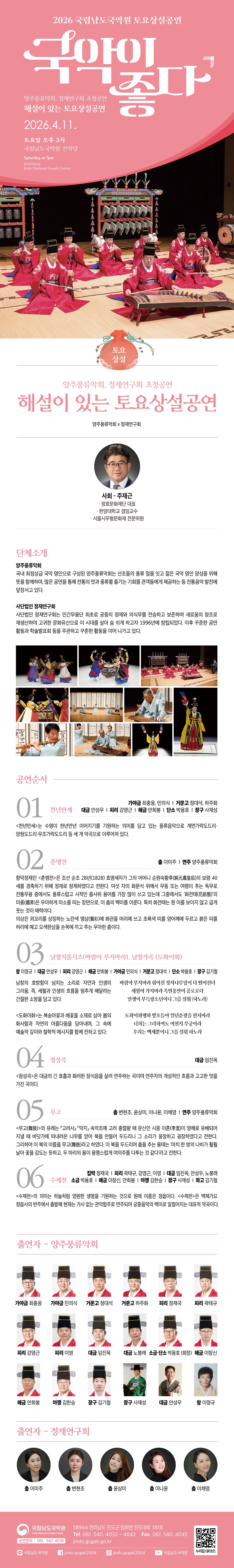 | 양주풍류악회 제111회 공연(2026.2.5. PM7시 남산국악당) (0) | 2026.02.04 |