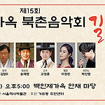 제15회 백인제가옥 북촌음악회가 '19. 10. 19.(토) 오후 5시 에 개최됩니다. - 공연부제 : 길 ○ 제15회 백인제가옥 북촌음악회 개요 - 공연부제 : 길 - 일 시 : 2019. 10. 19.(토) 오후 5시(90분) - 장 소 : 백인제가옥 안채마당 - 공연내용 : 거문고산조, 첼로, 판소리 - 진 행 자 : 서혜연 교수(서울대 성악과) - 출 연 자 : 이정란(첼로), 박진형(피아노), 정대석(거문고), 김정수(장구), 송재영(판소리), 고정훈(고수) 거문고 정대석 연주곡목 수리재 달무리 정대석제 거문고산조 ○ 공연관람은 전원 온라인 사전예약입니다. - 사전예약 일시 : 2019. 10. 17.(목) 09:00 ~ 10. 18.(금) 14:00, 선착순 마감 - 서울공공서비스예약 사이트(..