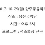 2017. 10. 29(일) 양주풍류악회 장소 : 남산국악당 시간 : 오후 3시 프로그램 : 평조회상 전곡