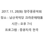 2017. 11. 28(화) 양주풍류악회 장소 : 남산국악당 크라운해태홀 시간 : 오후 7시 프로그램 : 중광지곡 전곡